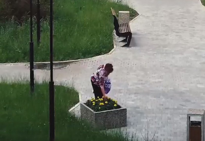 Администрация Узловского района распространила в социальных сетях видео с городских камер, на которое попала пенсионерка, ворующая цветы с клумбы.