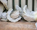 «Сначала мы делаем заготовку головы из пластилина, затем отлепляем ее из гипса, позже изготавливаем две половинки головы из нашего классического папье-маше – прессованной бумаги с гипсом и клеем – а затем соединяем их. Получается головка», – рассказала бутафор Ирина Харламова.
