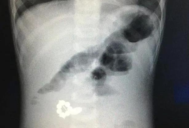 Ребенок поступил в детскую областную клиническую больницу с жалобами на рвоту, вялость и повышенную температуру. После рентгена выяснилось, что в брюшной полости маленького пациента находятся семь магнитов и одна батарейка, что привело к кишечной непроходимости.