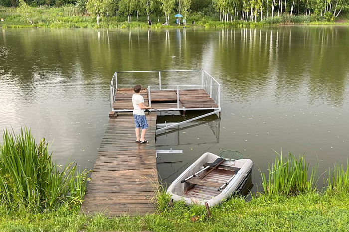 Школьник Анатолий приехал на пруд в честь Дня Рыбака.