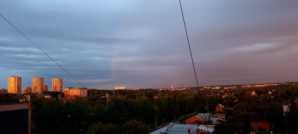 После недавно прошедшего дождя в небе над областной столицей появилась красивая радуга.
