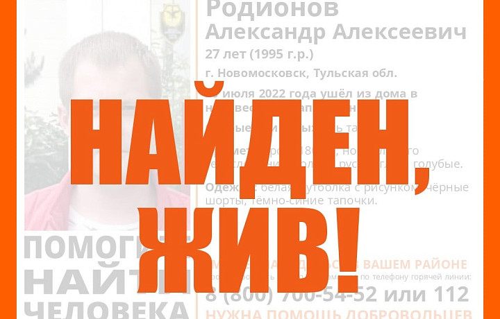 В Тульской области нашли живым 27-летнего мужчину