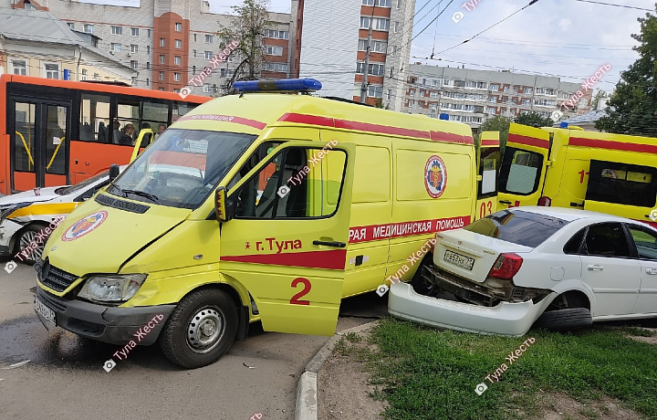 В Туле на улице Октябрьской произошло тройное ДТП с участием скорой помощи