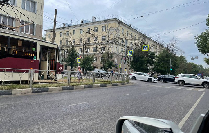 На пересечении улиц Болдина и Смидович в Туле сломавшийся автомобиль заблокировал движение трамваев