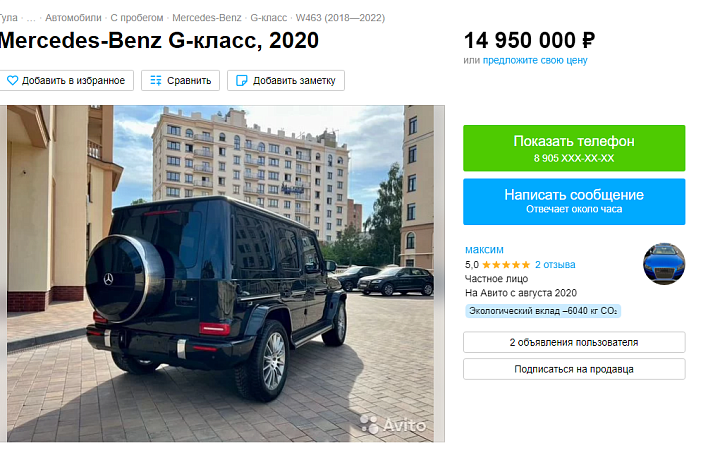 В Туле продают Mercedes-Benz G-класса без номеров за 14 950 000 рублей. Данная информация появилась на сайте бесплатных объявлений Avito.