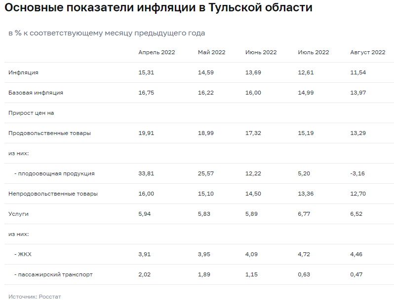 В августе годовая инфляция в Тульской области замедлилась и составила 11,5%