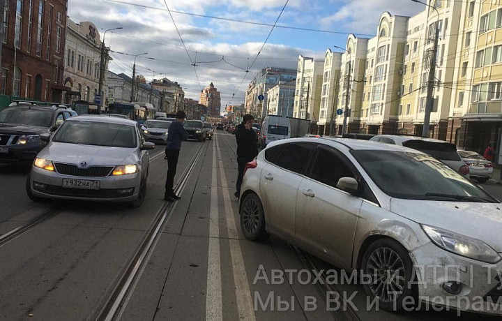 На пересечении улиц Советская и Пирогова в Туле встали трамваи из-за ДТП