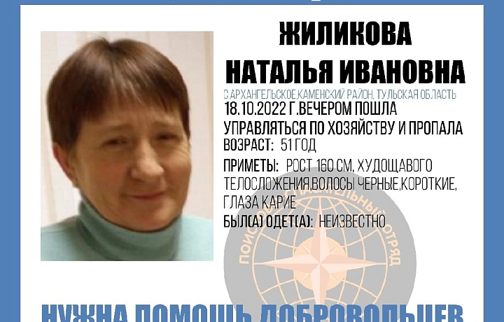 Информация об этом поступила от волонтеров из отряда «Поиск71» по Тульской области. Во что Наталья была одета — неизвестно. Из примет — рост 160 сантиметров, худощавого телосложения, волосы черные, короткие, глаза карие.