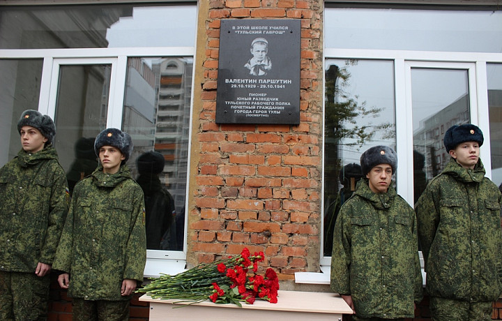 На здании Центра образования №39 в Туле установили мемориальную доску пионеру-герою, Почетному гражданину города, участнику Тульской оборонительной операции Валентину Паршутину.