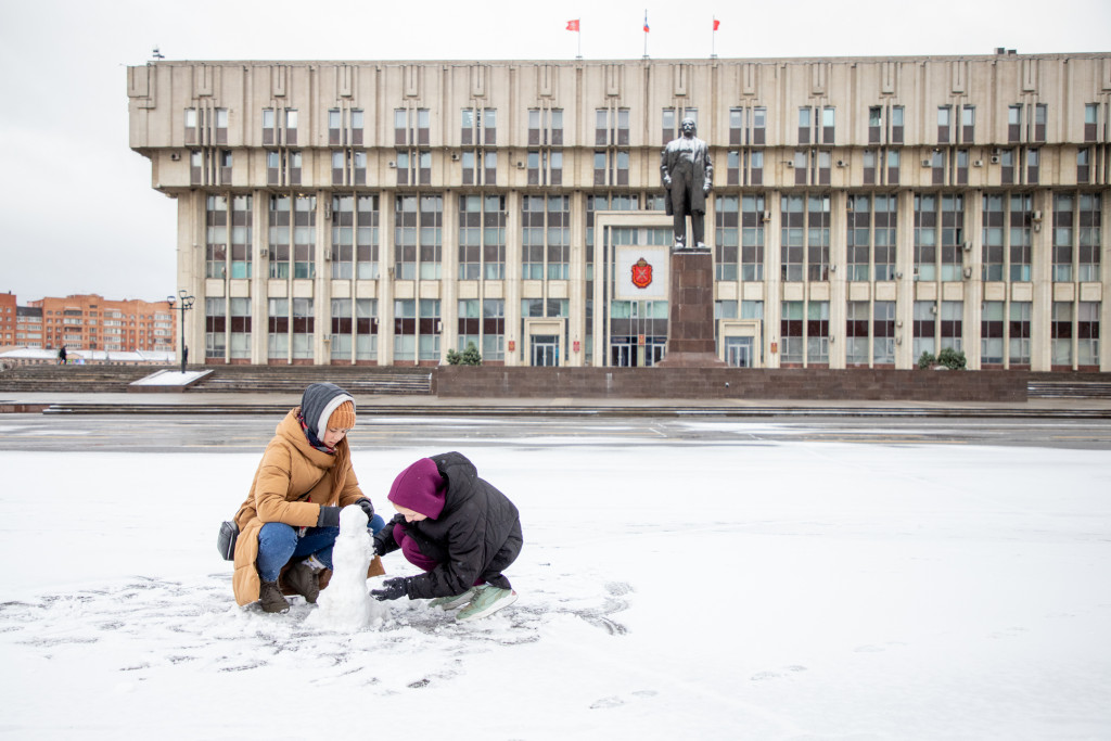 Никуда и без снеговиков! Один из них юные тулячки слепили перед «белым домом» на площади Ленина.