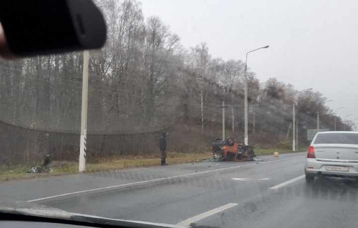 В результате аварии автомобиль «Ока» перевернулся. О пострадавших на данный момент ничего неизвестно. На месте происшествия работают сотрудники ГИБДД.