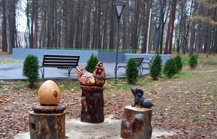 В парке «Жалка» в Алексине появилась новая скульптурная композиция по сказке «Курочка Ряба»
