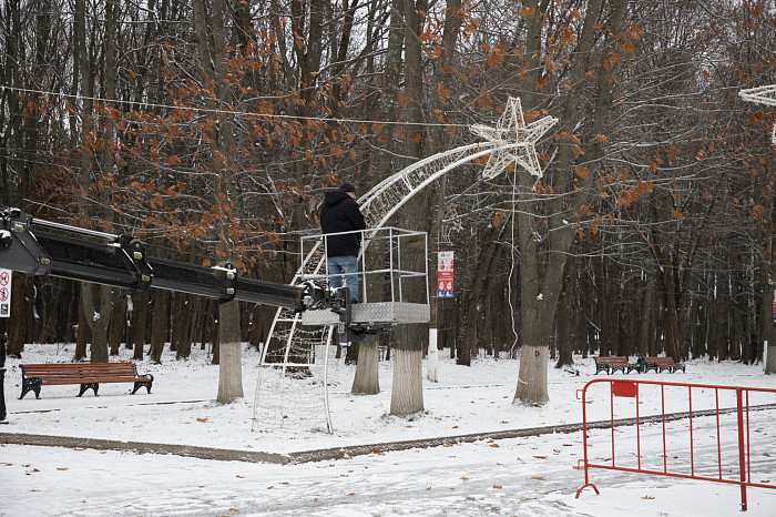 Приступили к украшению и Центрального парка культуры и отдыха имени П.П. Белоусова.