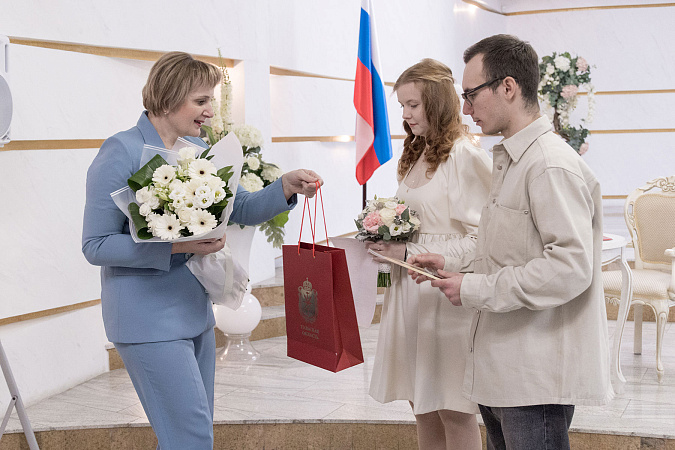 Молодоженам вручили сертификат на приобретение бытовой техники от губернатора Тульской области. Всего с начала мобилизации на основании повесток в регионе в сокращенные сроки поженились около 500 пар.«Вы своей настойчивостью уже доказали, что для вас нет непреодолимых преград, и подтвердили готовность вместе, рука об руку идти по жизни», – сказала Ольга Гремякова.