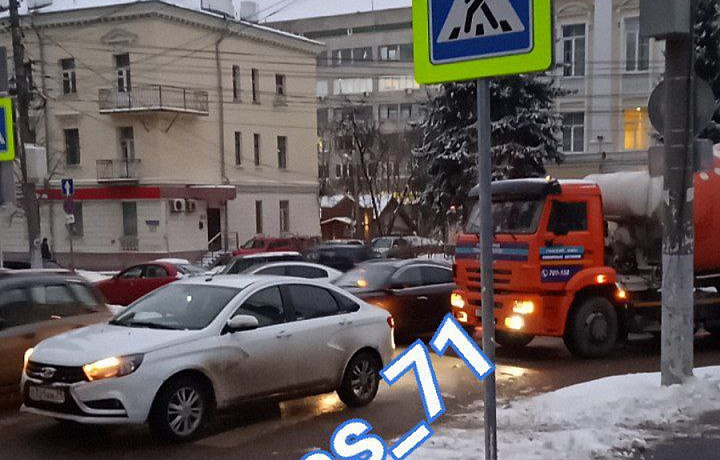 На улице Льва Толстого в Туле собралась пробка из-за ДТП «КАМАЗа» и легковушки