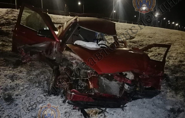В Воловском районе уснувший водитель Lada Priora врезался в отбойник