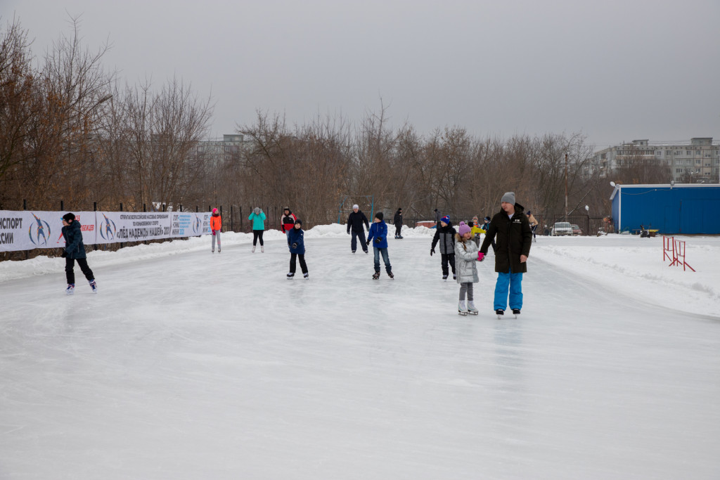 Покататься можно на большом катке возле «Зеленой планеты» и в хоккейной коробке возле базы проката.