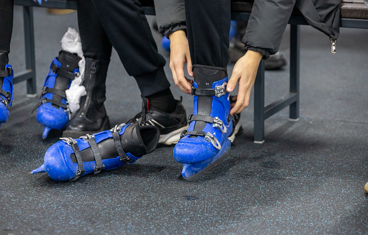 Покататься в закрытом помещении можно в выходные дни, если в ледовом дворце не проводятся хоккейные матчи. Забронировать билеты можно на сайте: https://uss71.ru/