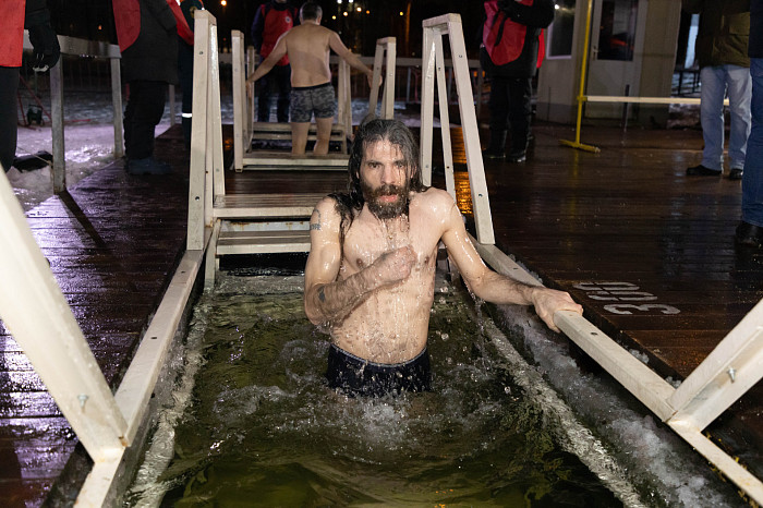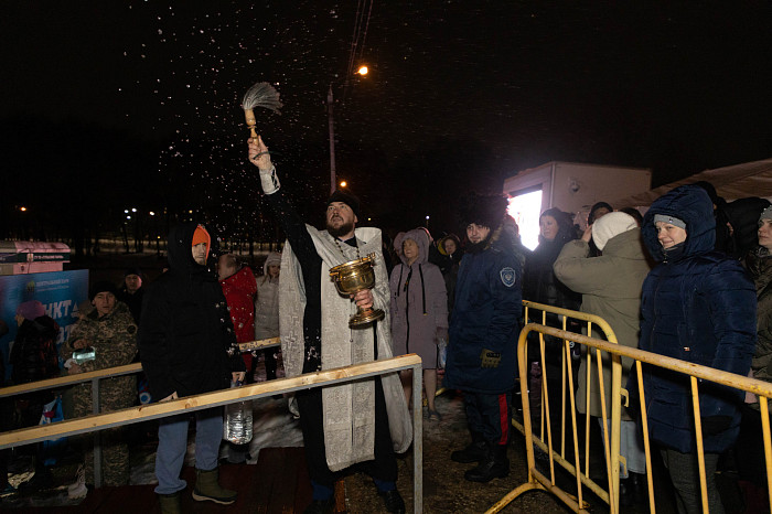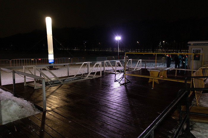 Для проведения мероприятия на среднем пруду парка были вырезаны и обустроены две купели, установлены палатки с обогревом для переодевания и полевая кухня с кашей, горячим чаем и выпечкой.