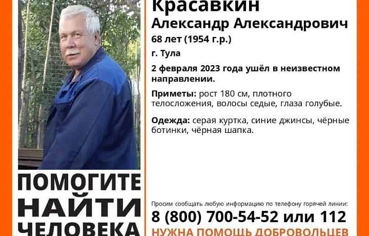 Тульской области начались поиски пропавшего красавкина Александра Александровича, сообщили волонтёры поисково-спасательного отряда Лиза Алерт.