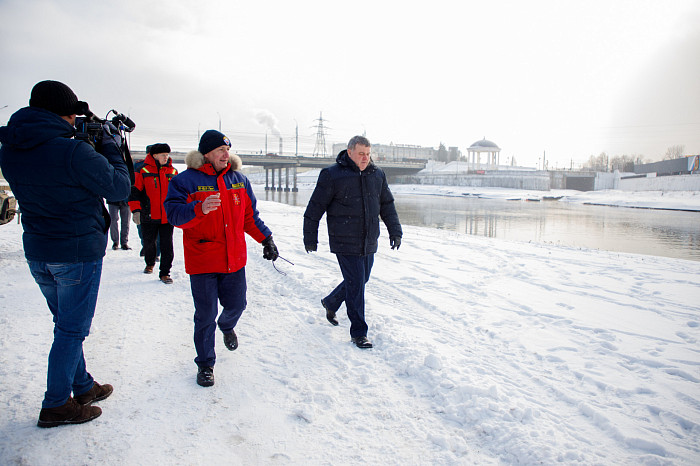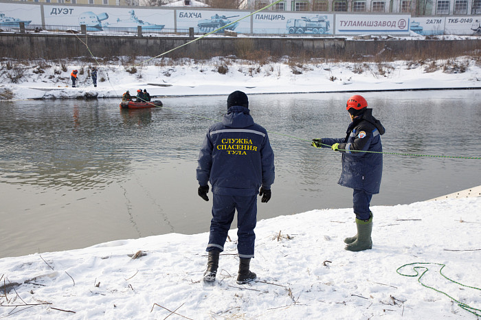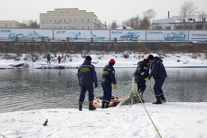 В Туле на набережной Дрейера состоялась ежегодная тренировка поисково-спасательной службы по действиям во время паводка. Их навыки и готовность оценивал глава администрации областной столицы Илья Беспалов.