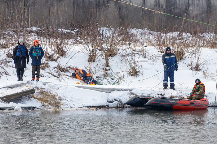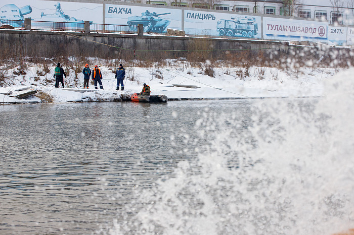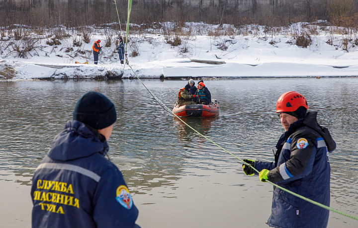 Для проверки на Упе организовали несколько точек, на которых тульские спасатели отрабатывали несколько ситуаций во время прохождения паводковых вод.