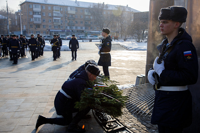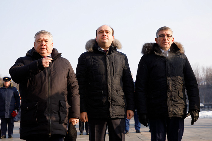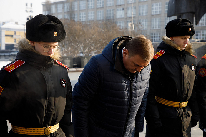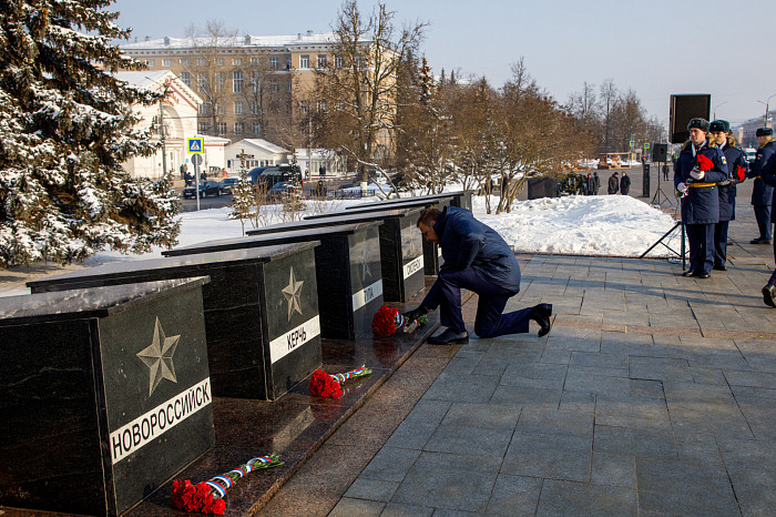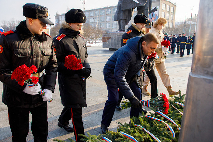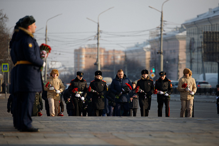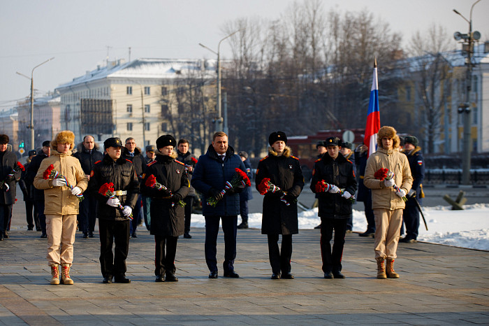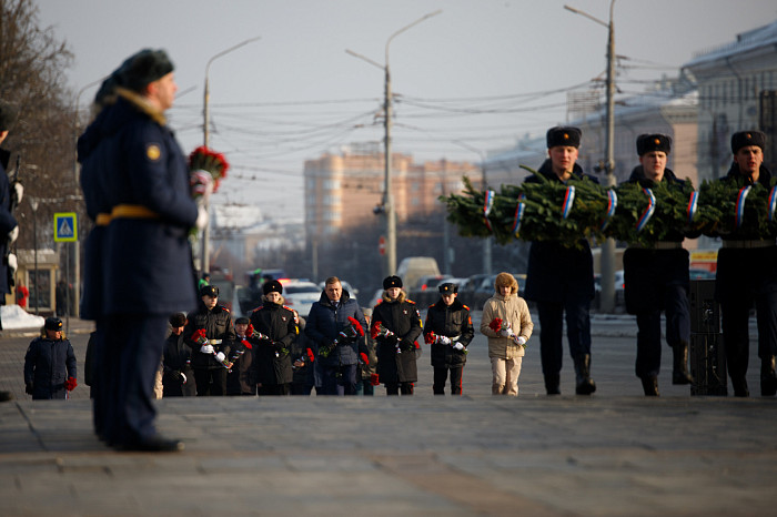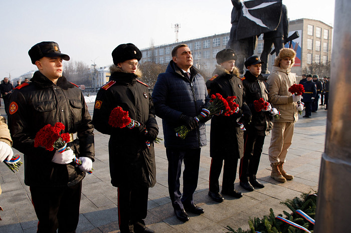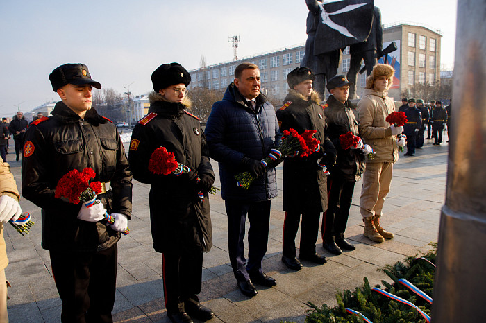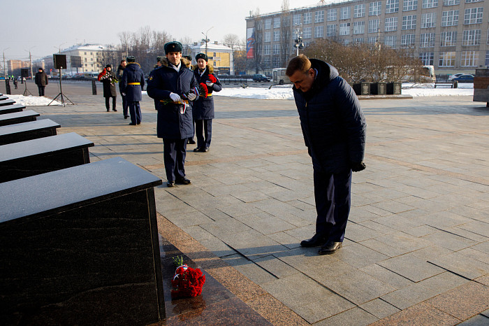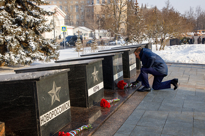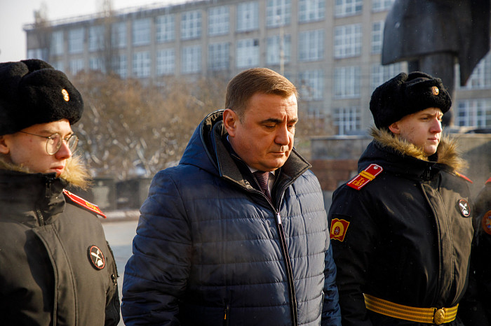 В Туле на площади Победы губернатор Алексей Дюмин возложил цветы к Вечному огню