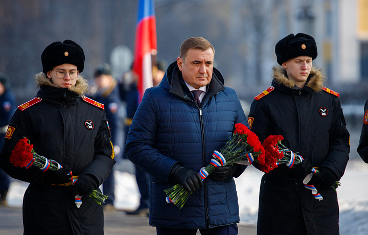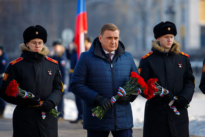 Сегодня, 22 февраля, на площади Победы в Туле губернатор региона Алексей Дюмин возложил цветы к Вечному огню в честь предстоящего Дня защитника Отечества.