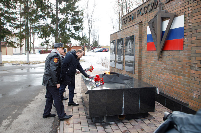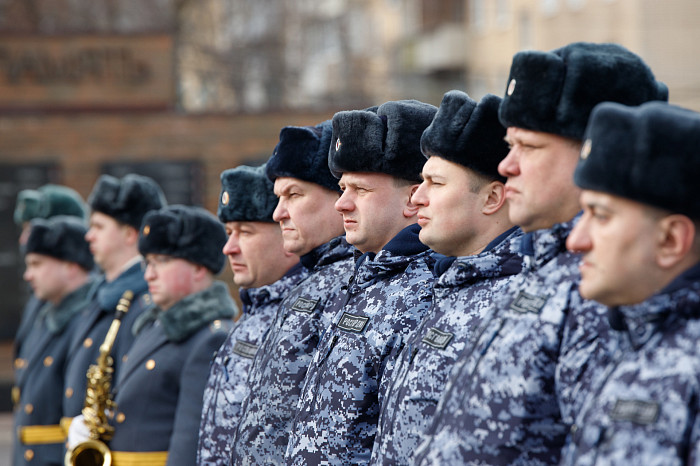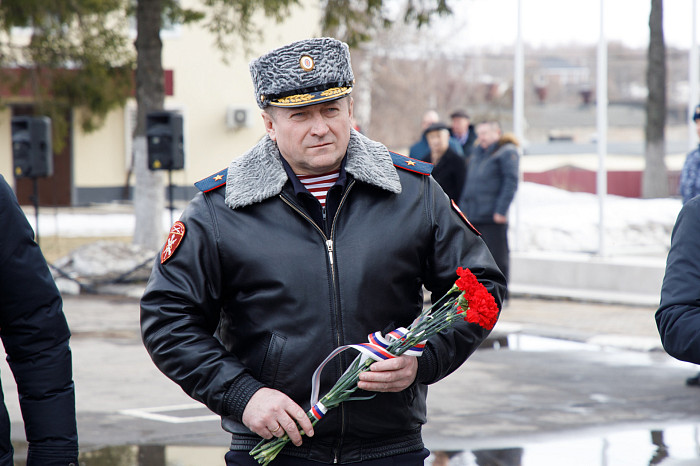 В ходе мероприятия прошла церемония возложения цветов к памятнику военнослужащим и сотрудникам ведомства, которые погибли при исполнении воинского и служебного долга.