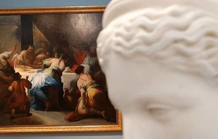 Основой для картины «Пир Валтасара» послужил библейский сюжет из Книги пророка Даниила, входящей в Ветхий Завет, сообщили в региональном музейном объединении.
