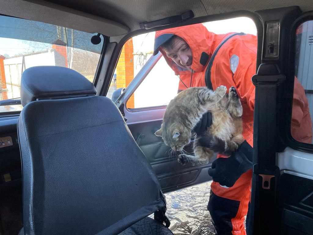 Чтобы добраться до дома, где жила заявительница, инспектор ГИМС Виталий Черных надел гидрокостюм, спустился в воду и разбил образовавшийся от морозов лед, чтобы машина смогла подъехать ко входу. После этого он помог женщине с котом выбраться из дома, и довез ее до квартиры.