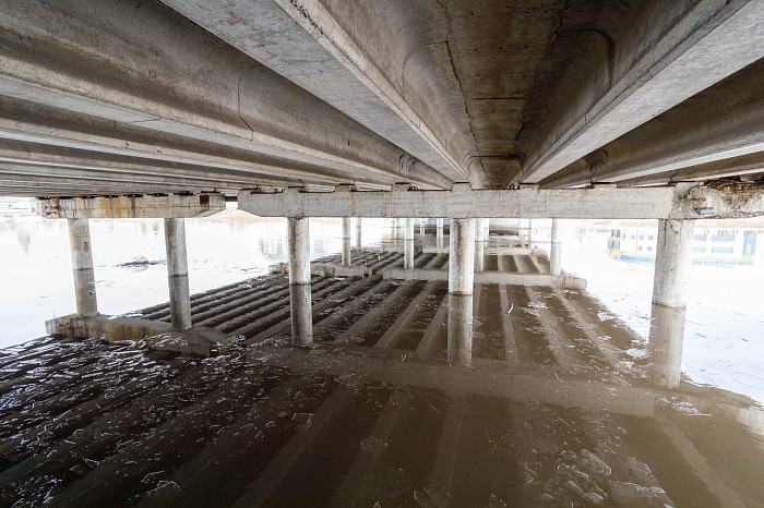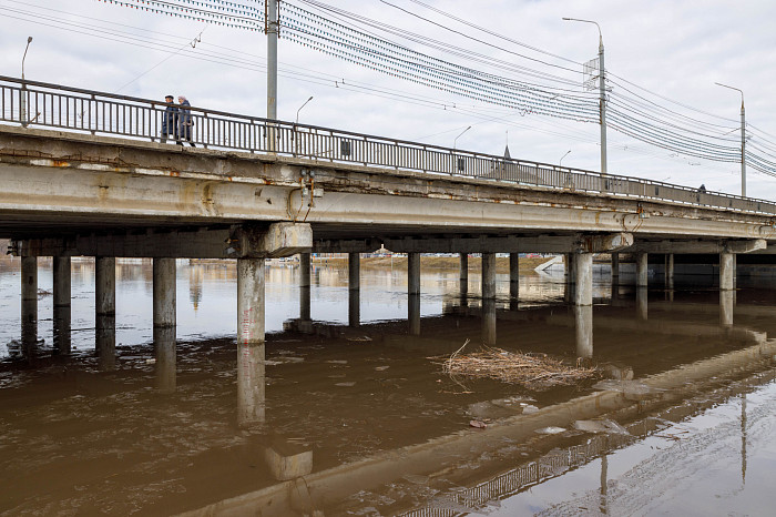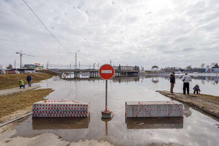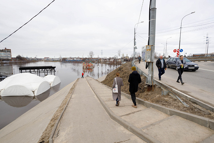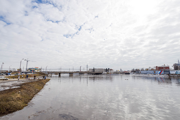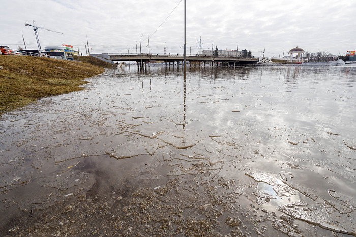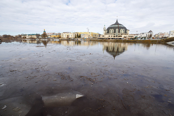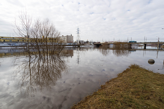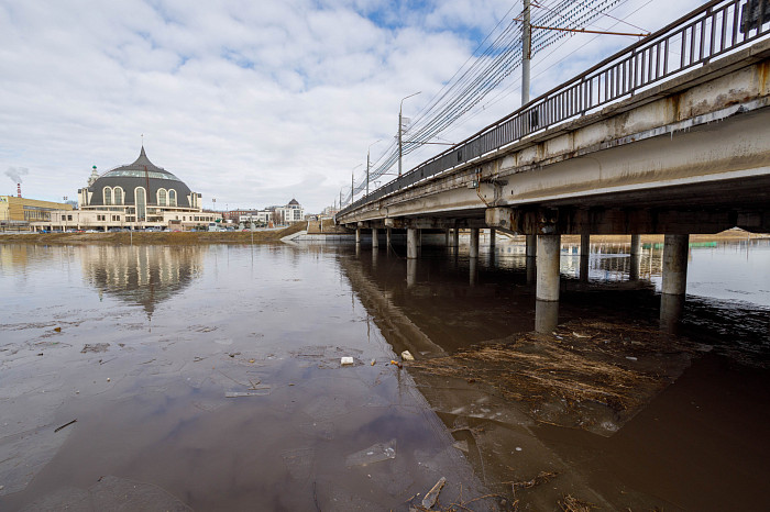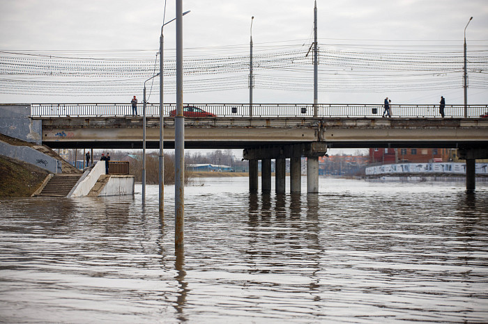 На Пролетарской набережной в Туле затопило пешеходный мост