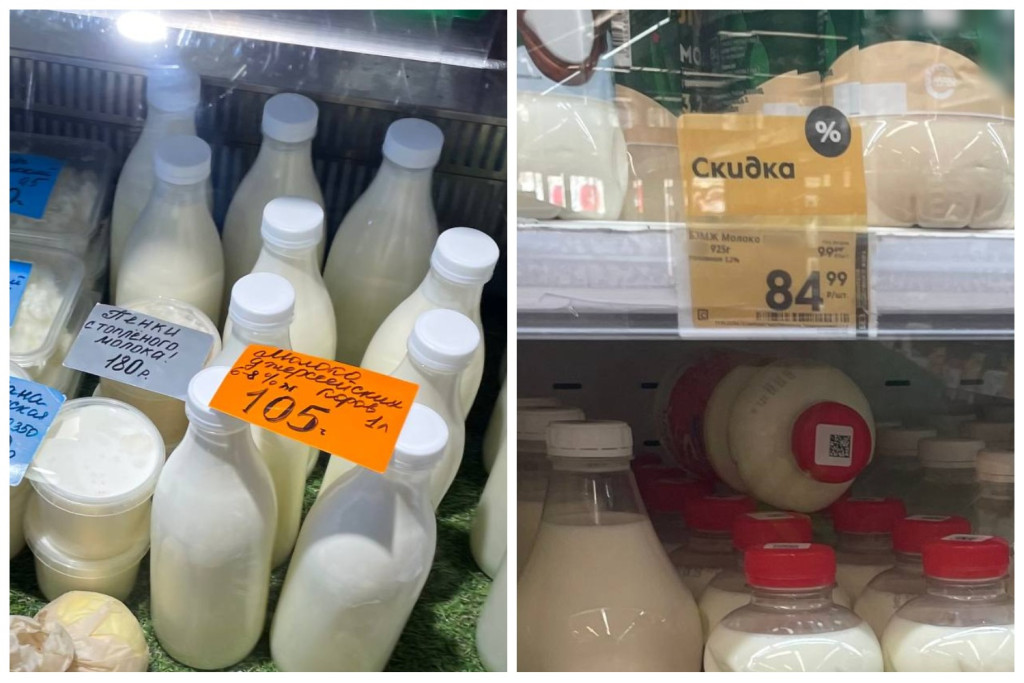 Молоко по стоимости в магазинах и на прилавках от сельскохозяйственных угодий практически не отличается.