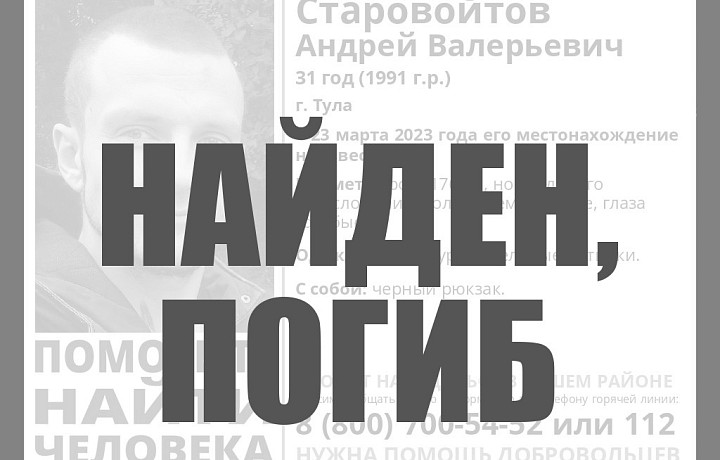 Волонтеры ранее рассказывала, что местонахождение туляка было неизвестным с 23 марта. Его можно было узнать по шраму на лбу, тату на правой кисти и черному рюкзаку «Арсенал Тула».