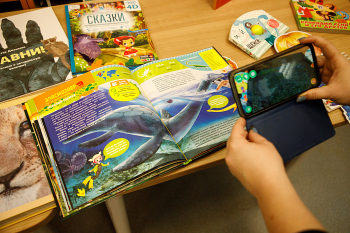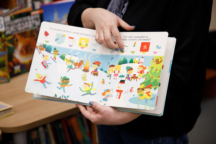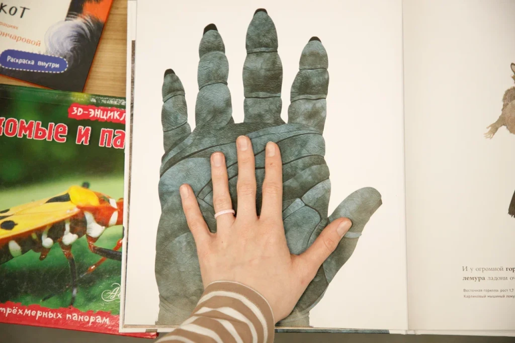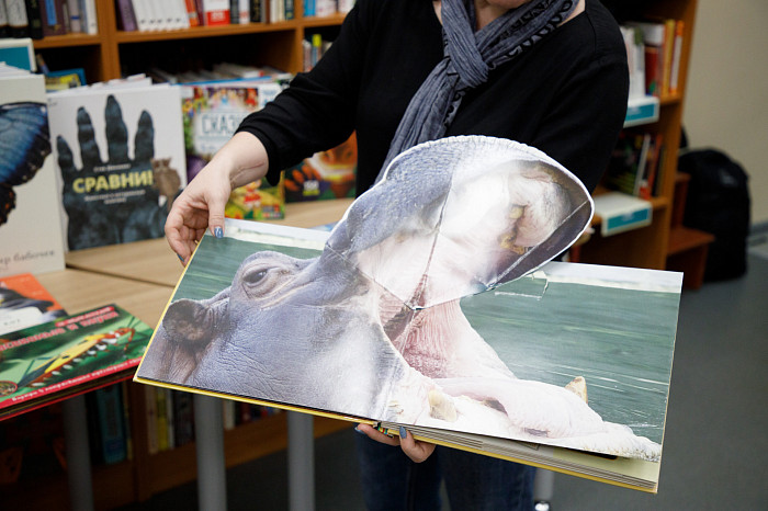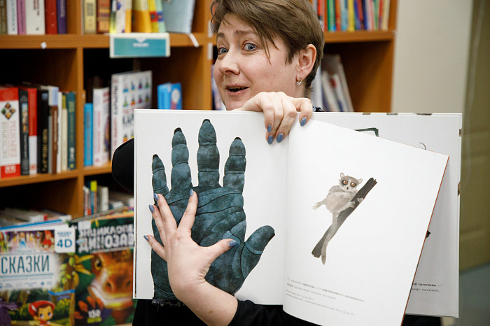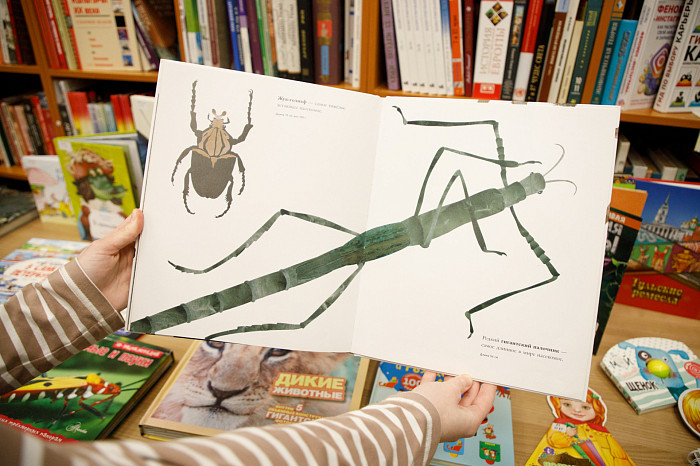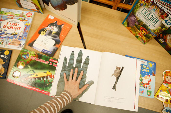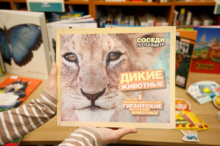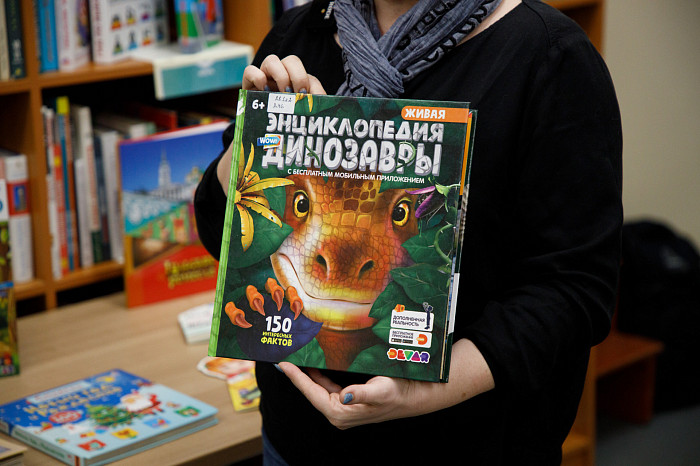 «Всем нравится взаимодействовать с книгами, у которых могут открываться вкладыши, где каждая страница – это большой сюрприз. Например, есть у нас книга про Бородинскую битву, где, открыв специальное окошечко, можно найти все виды холодного оружия, где на страницах предстают образы воинов. Очень интересны энциклопедии с дополненной реальностью. Нужно скачать на смартфон специальное приложение, навести на страницу, и на экране перед нами оживают динозавры, строятся чудеса света. Такие же возможности есть у некоторых книг со сказками. В связи с тем, что много линейного текста мало кого заинтересует, создают интересные книги, где ребенок может выступить в роли исследователя. Есть у нас книга «Сравни», где глаза, лапы, хвосты и другие части животных написаны в натуральную величину. Например, можно сравнить свою руку с рукой гориллы – это вызывает у детей удивление, а иногда даже страх. Или, например, книга «Соседи по планете» – здесь есть раскрывающиеся иллюстрации и фотографии животных, а рядом – информация про них. Совсем недавно купили книгу «Загадочный мир бабочек» – здесь на некоторых страничках предусмотрена линейка, и можно посмотреть натуральный размер бабочки, представить себе, какая она», – говорит Татьяна Колчева.