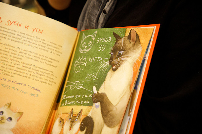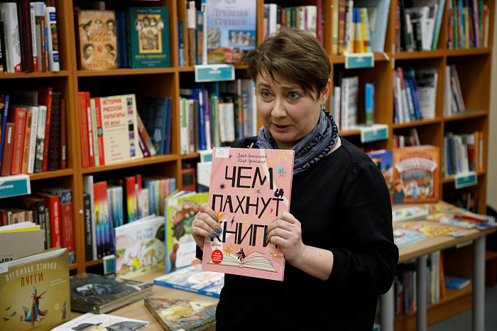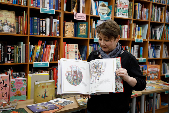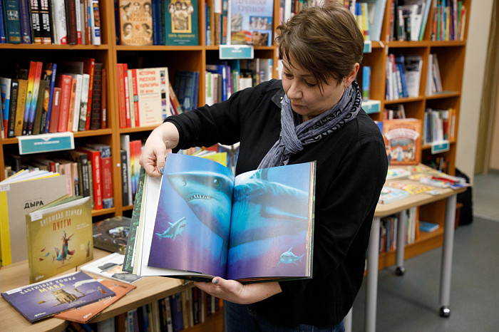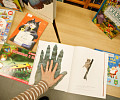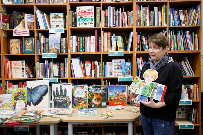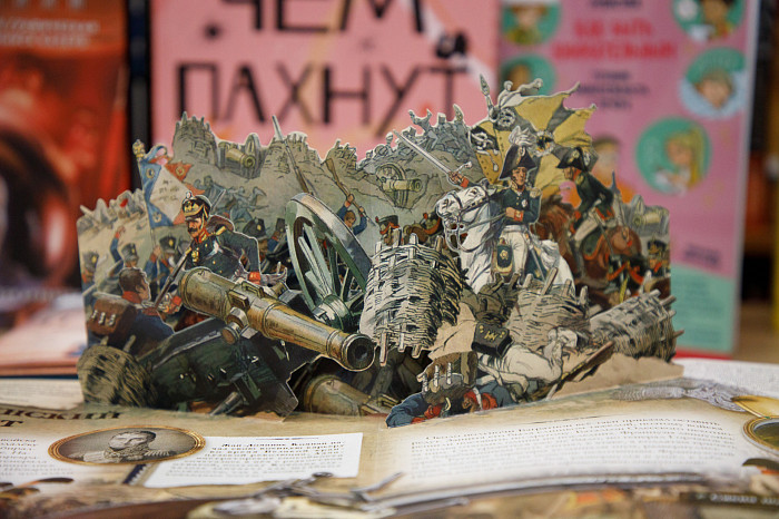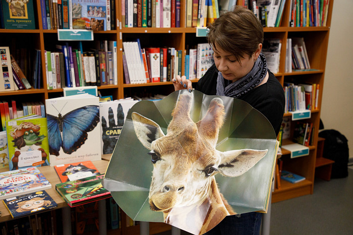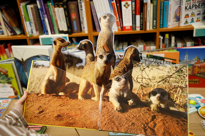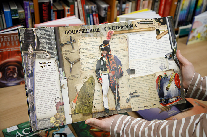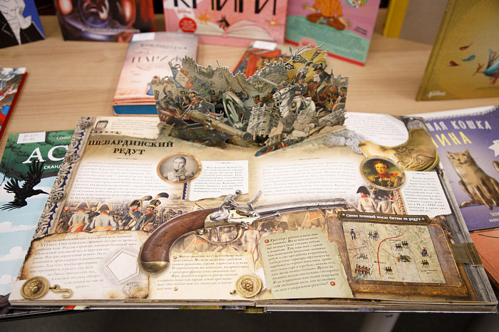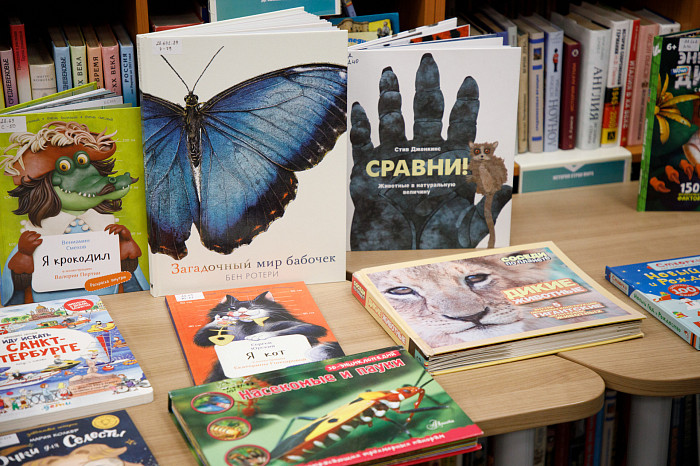 «Всем нравится взаимодействовать с книгами, у которых могут открываться вкладыши, где каждая страница – это большой сюрприз. Например, есть у нас книга про Бородинскую битву, где, открыв специальное окошечко, можно найти все виды холодного оружия, где на страницах предстают образы воинов. Очень интересны энциклопедии с дополненной реальностью. Нужно скачать на смартфон специальное приложение, навести на страницу, и на экране перед нами оживают динозавры, строятся чудеса света. Такие же возможности есть у некоторых книг со сказками. В связи с тем, что много линейного текста мало кого заинтересует, создают интересные книги, где ребенок может выступить в роли исследователя. Есть у нас книга «Сравни», где глаза, лапы, хвосты и другие части животных написаны в натуральную величину. Например, можно сравнить свою руку с рукой гориллы – это вызывает у детей удивление, а иногда даже страх. Или, например, книга «Соседи по планете» – здесь есть раскрывающиеся иллюстрации и фотографии животных, а рядом – информация про них. Совсем недавно купили книгу «Загадочный мир бабочек» – здесь на некоторых страничках предусмотрена линейка, и можно посмотреть натуральный размер бабочки, представить себе, какая она», – говорит Татьяна Колчева.