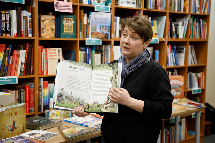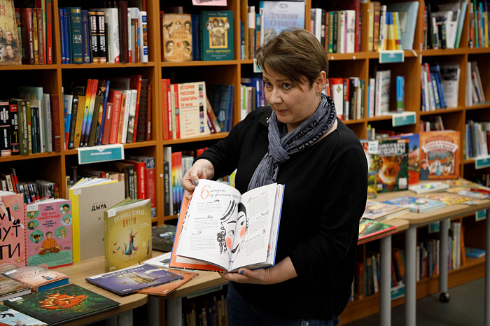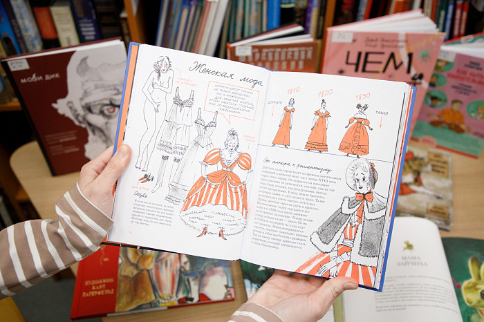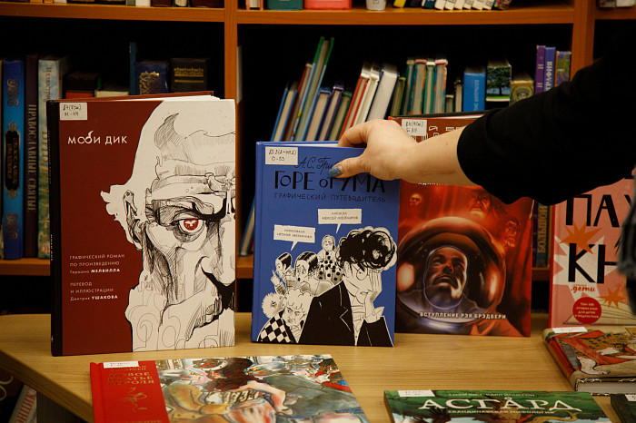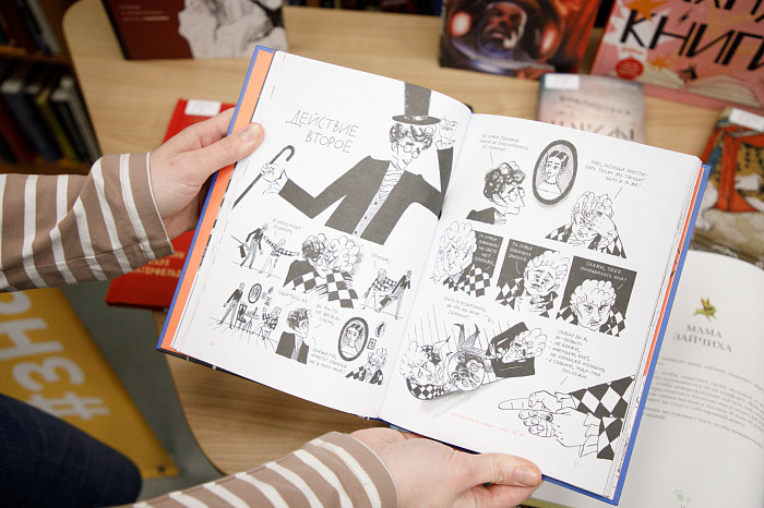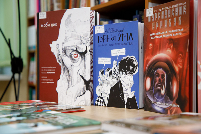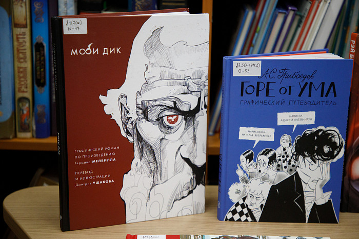 «Мы покупаем графические романы. Изучая их, ребенок не только читает произведение, но и наслаждается книгой, как настоящим художественным произведением. Например, есть у нас книга Г. Мелвилла «Моби Дик», которую в академическом варианте сегодня мало кто осилит, но знать концепт этого произведения все же стоит. Здесь совершенно потрясающие картинки, информация воспринимается легко. Также идут споры о русской классике – насколько она интересна детям. Мы имеем книги А.С. Пушкина «Евгений Онегин» и А.Г. Грибоедова «Горе от ума» так же в форме графического романа. Текст здесь перемежается с объяснениями и комментариями. Например, в картинках ребенок может увидеть распорядок дня людей того времени, правила женской и мужской моды, популярные маршруты для прогулок, объяснение непонятных для современного читателя слов. Это очень важно, поскольку, как ни крути, а эпоха Пушкина и Грибоедова от нас далека», – отметила Татьяна Колчева.