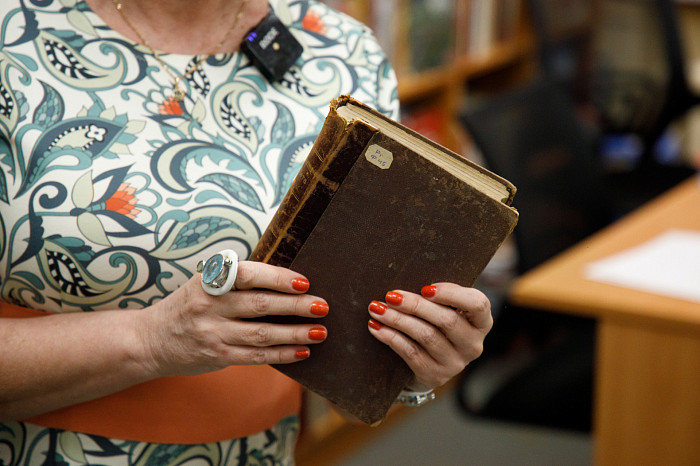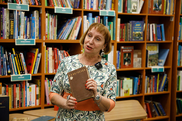Далеко не все дети, войдя в библиотеку, первым делом пойдут искать яркие издания с картинками – кому-то гораздо интереснее подержать в руках старые и даже старинные издания, насладиться незабываемым ароматом пролистанных сотней людей страниц. Такие книги тоже есть в Тульской областной детской библиотеке. Заведующая отделом мультимедийных цифровых ресурсов Инна Полонская показала нашей съемочной группе несколько книг с удивительной историей.