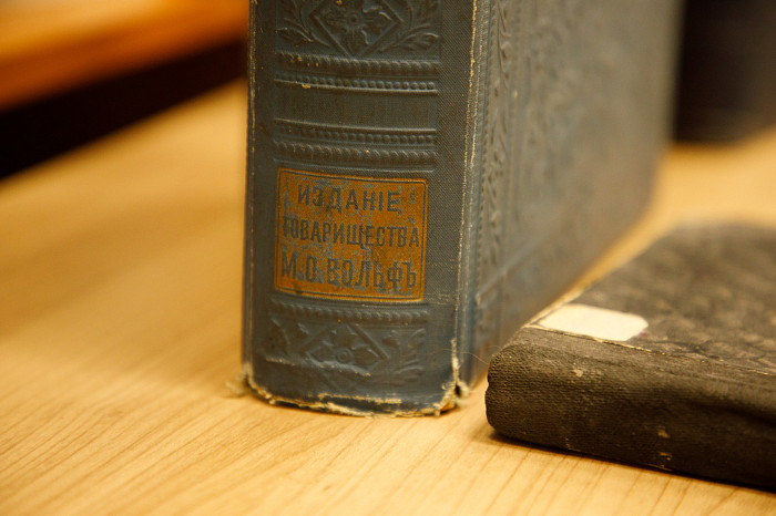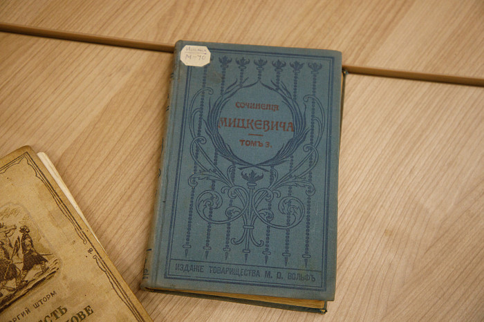 Хранится в нашей библиотеке книга со стихами в прозе И.С. Тургенева. История ее создания удивляет. В далеком 1930 году Андре Мазон, известный французский литературовед, большой специалист по русской литературе, работал с архивами и наткнулся на эти неопубликованные стихи. В ближайшее время они уже были изданы во Франции – одна половина книги была на французском, вторая – на русском. Спустя год, в 1931 году, эти стихи выходят уже в СССР. Есть у нас необычные книги от известного дореволюционного издательства имени А.Ф. Маркса, которое, в частности, печатало книги на заказ для домашних библиотек богатых людей. Таких томов у нас два – на одной на корешке указаны инициалы «ВК», а на второй – «С. Сержантов». Мы не знаем, кто эти люди, но книги их бережно храним, –