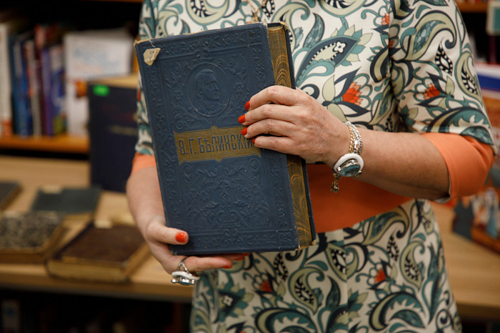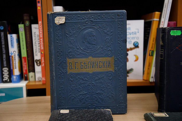 «Например, подарочная книга о жизни и творчестве В.Г. Белинского, выпущенная издательством М.О. Вольфа до революции. Текст здесь оформлен редкими фотографиями и портретами малоизвестных авторов, на творчество которых известный критик писал рецензии, на обложке, выполненной из кожи, есть большое клеймо, которое было опознавательным знаком издательства, выбит портрет В.Г. Белинского, срез выполнен в тон книги. Есть у нас не менее красивая книга, выпущенная к 200-летию со дня смерти известного мореплавателя В.И. Беринга, и содержащая отчеты, дневники и переписку ученого. На обложке здесь мы видим путь его камчатской экспедиции, изящно выбитые вулкан и компас. Такие детали можно долго разглядывать», – говорит Инна Полонская.