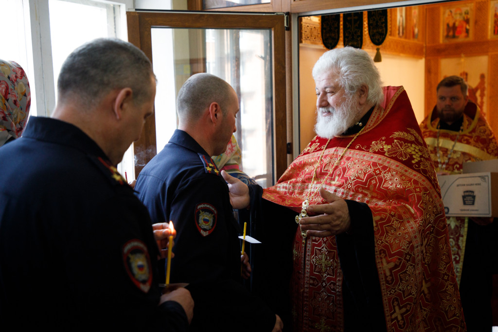 Далее лампаду, которая была возожжена от Благодатного огня у Гроба Господня в Иерусалиме, привезли в Тулу в молельную комнату Центра профессиональной подготовки тульского УМВД. Здесь прошла торжественная служба.