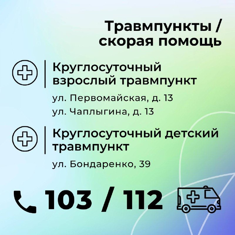Взрослые травмпункты, расположенные в Туле на улицах Первомайской и Чаплыгина, а также детский травмпункт, расположенный на улице Бондаренко, в период майских праздников будут принимать пациентов круглосуточно.Скорая помощь