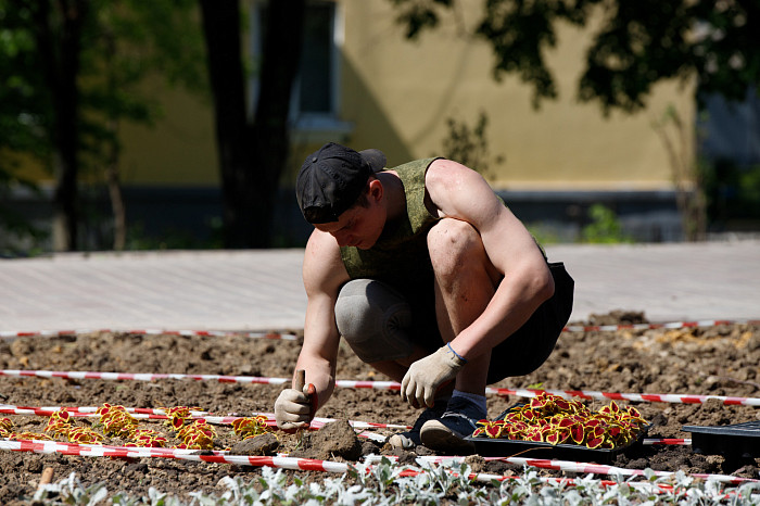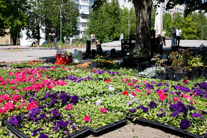 Сегодня, 17 мая, рабочие занимались посадкой цветов на общественных пространствах. В этом году они начали посадку однолетних и многолетних цветов в областной столице с 25 апреля.