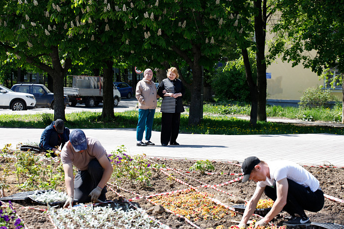 Цветочные композиции уже появились на нескольких местах в городе, включая Красноармейский проспект, Студенческий сквер, поселок Косая Гора, деревни Н. Елькино, Струково, Зайцево и другие. К майским праздникам было готово 17 объектов.