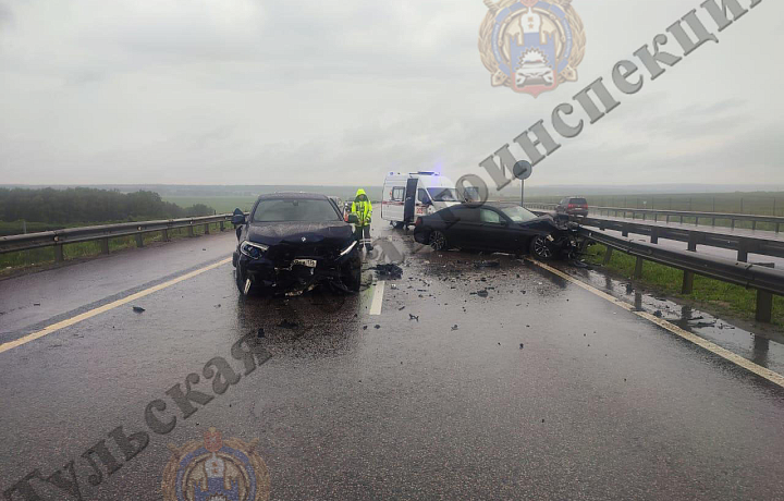В Тульской области на трассе М-4 водитель BMW врезался в стоявший на обочине автомобиль