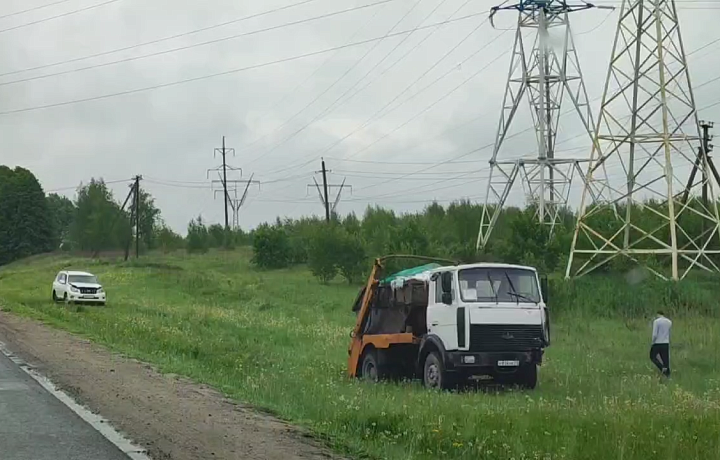 На трассе М-2 в районе Масловского водозабора Тулы мусоровоз и внедорожник после столкновения выехали в кювет