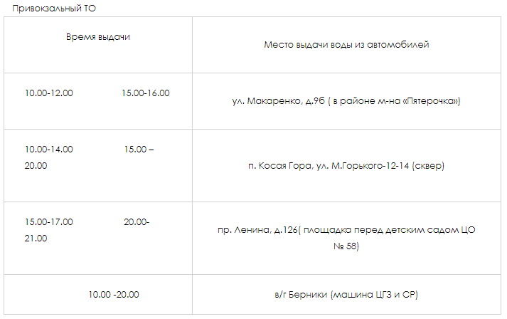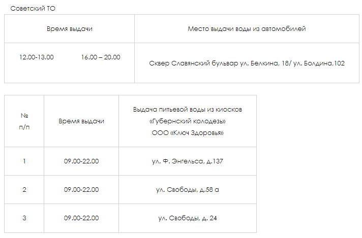 Для жителей Советского района воду будут раздавать по следующим адресам: