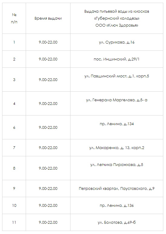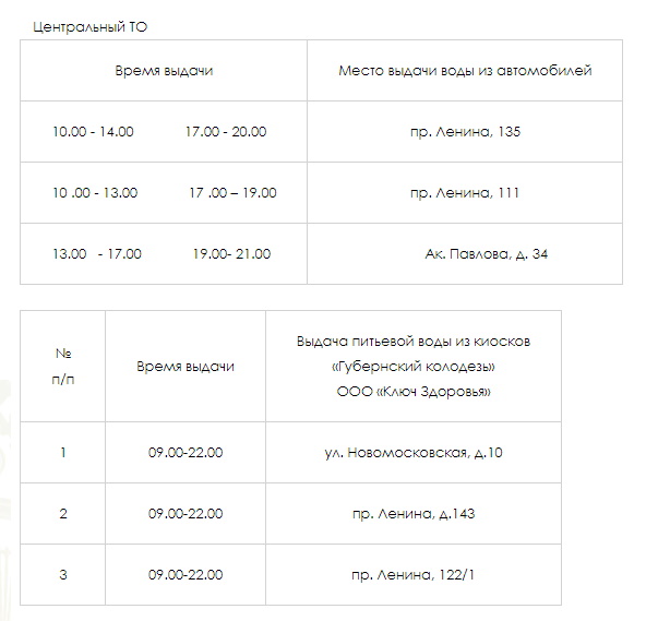 Так, жителям Центрального района можно будет получить воду по следующим адресам: