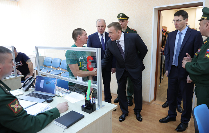 Полпред президента в ЦФО Щеголев и губернатор Дюмин посетили пункт отбора на службу по контракту и тульский филиал фонда «Защитники Отечества»