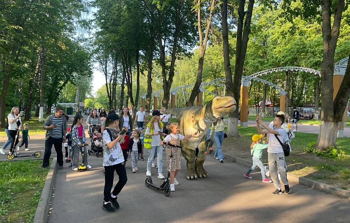 Прогулки доисторического зверя связаны с празднованием в парке Дня защиты детей.